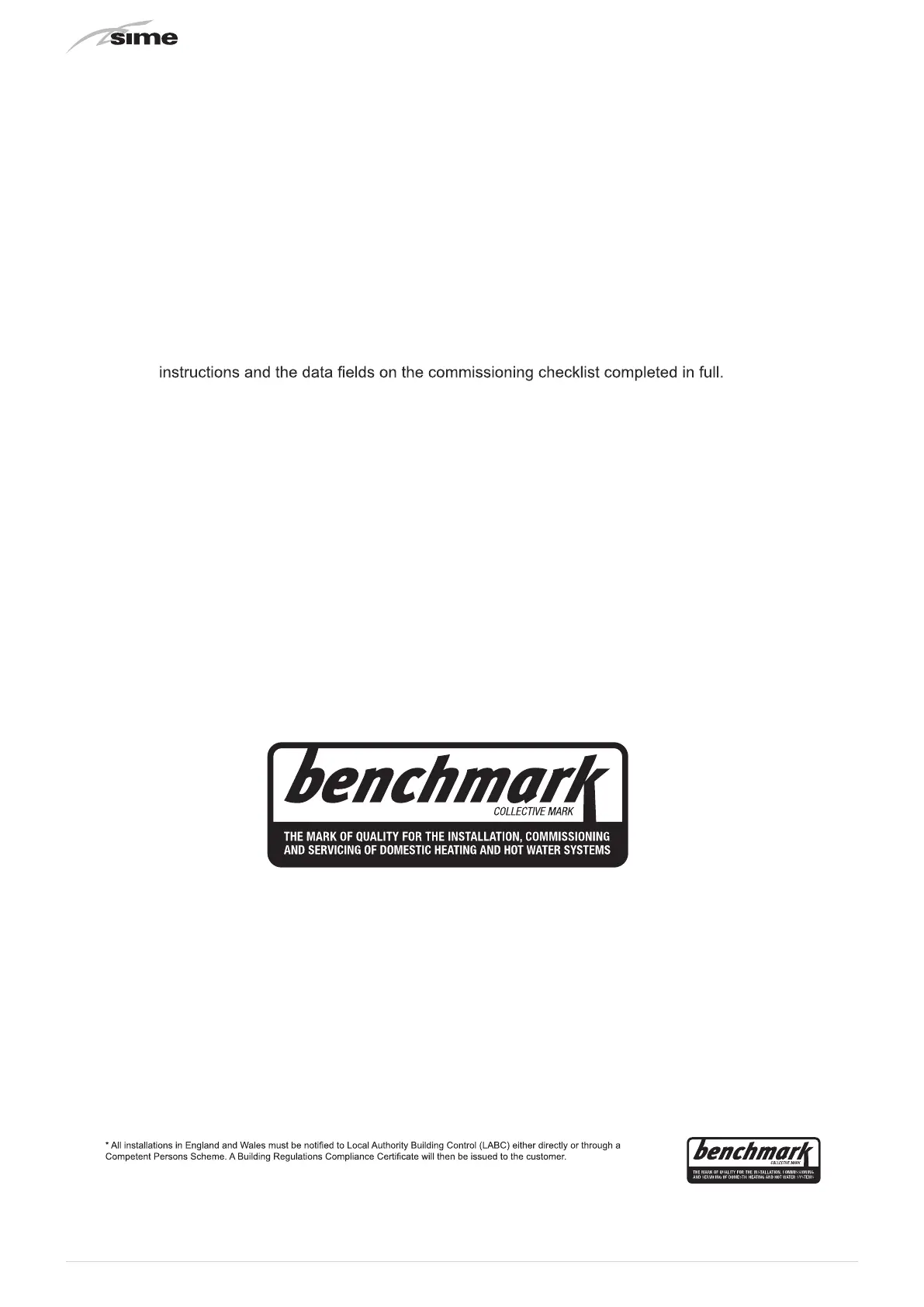 Failure to install and commission according to the manufacturers’ instructions and complete this Benchmark Commissioning Checklist will invalidate the