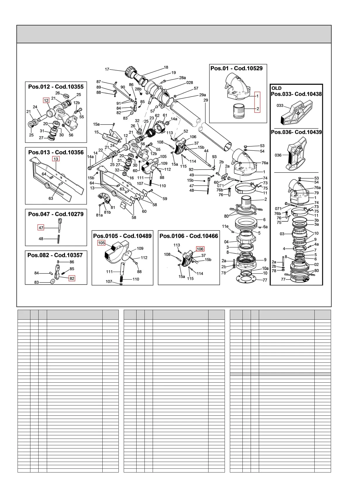 Piezas de recambio: Solicitando piezas de recambio, especificar siempre el tipo de rociador y el número de posición que aparece en el dibujo.