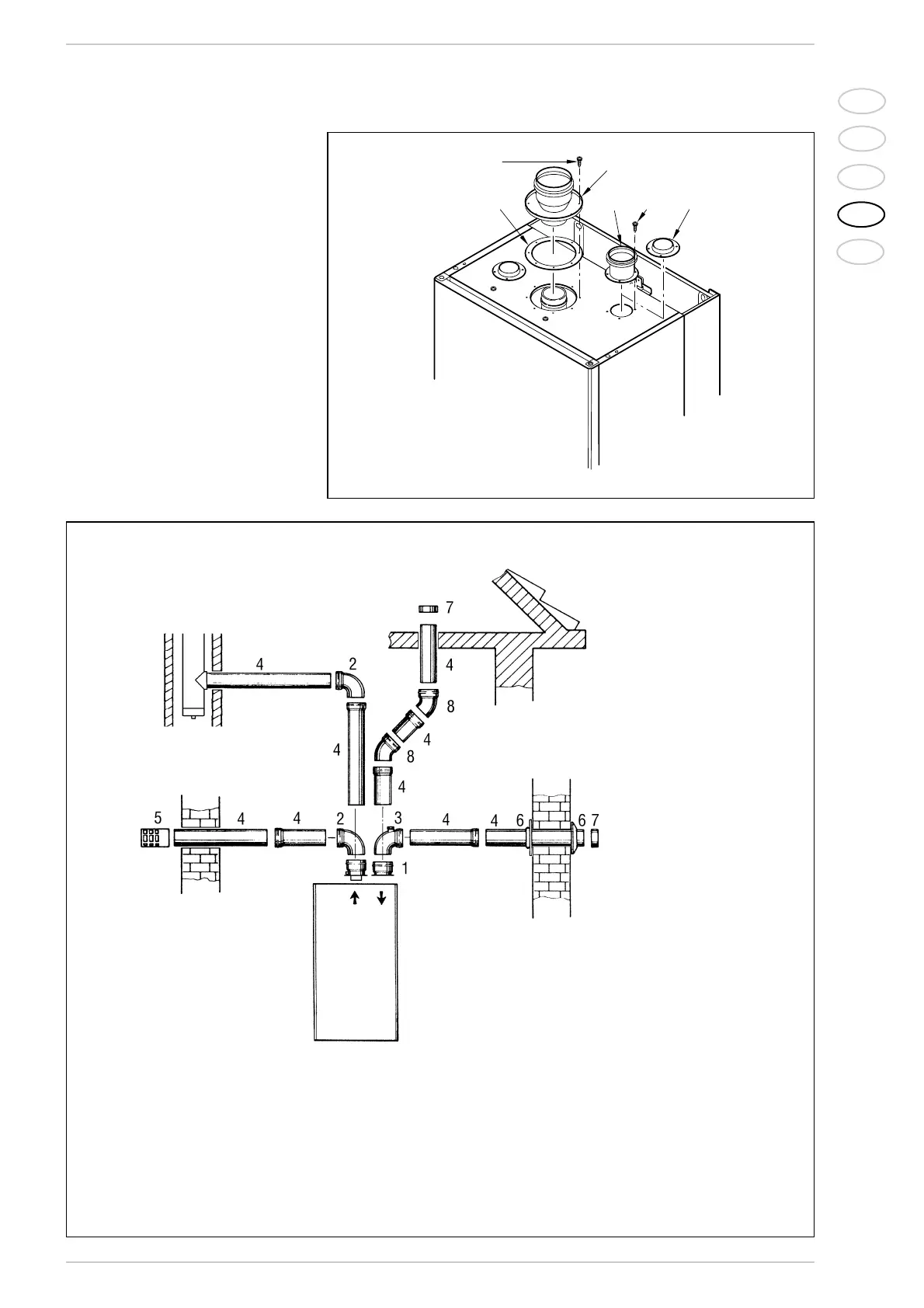 The ø 80 flue gas pipe may be connected to