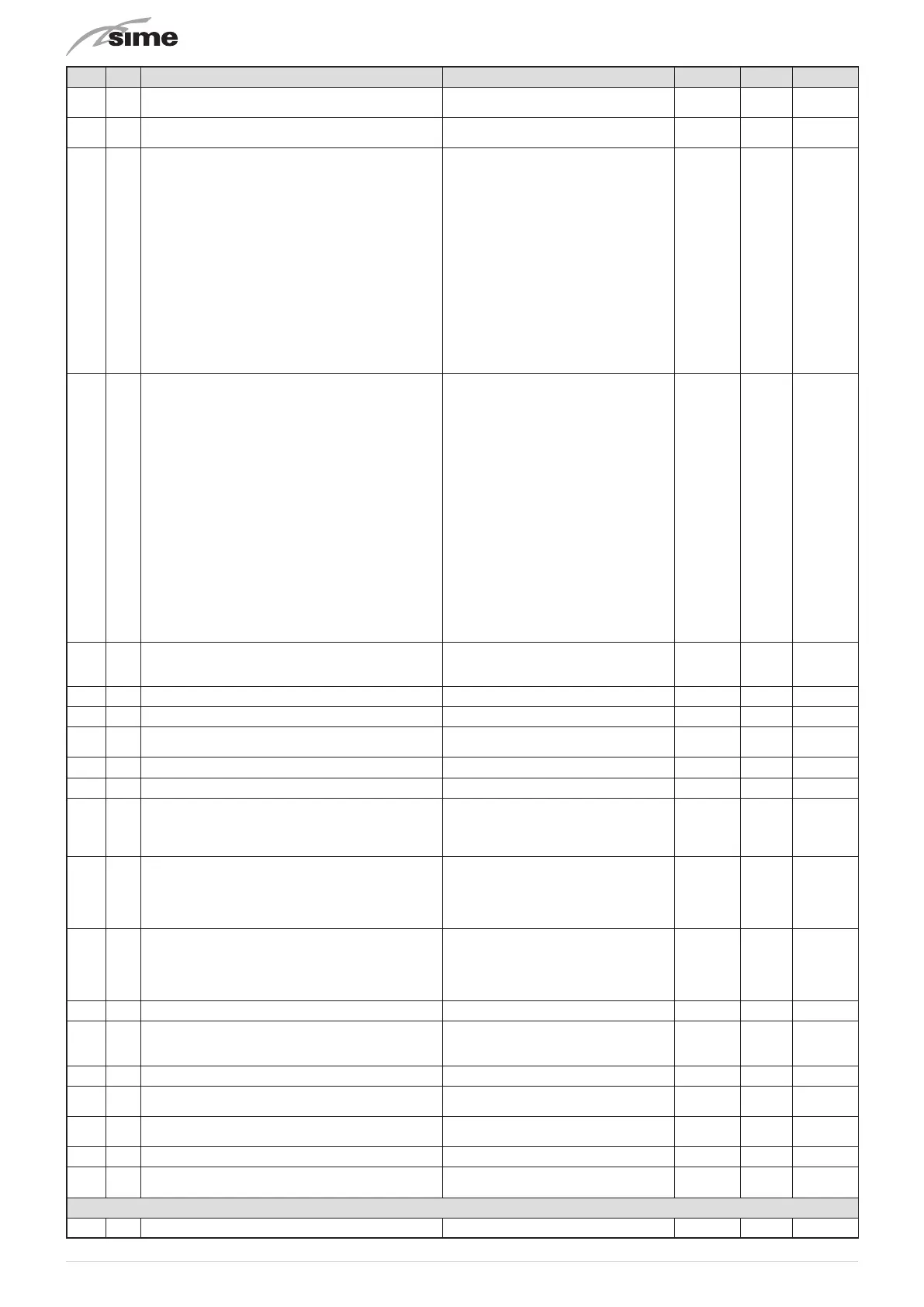 Type No. Description Range U/M Step Default