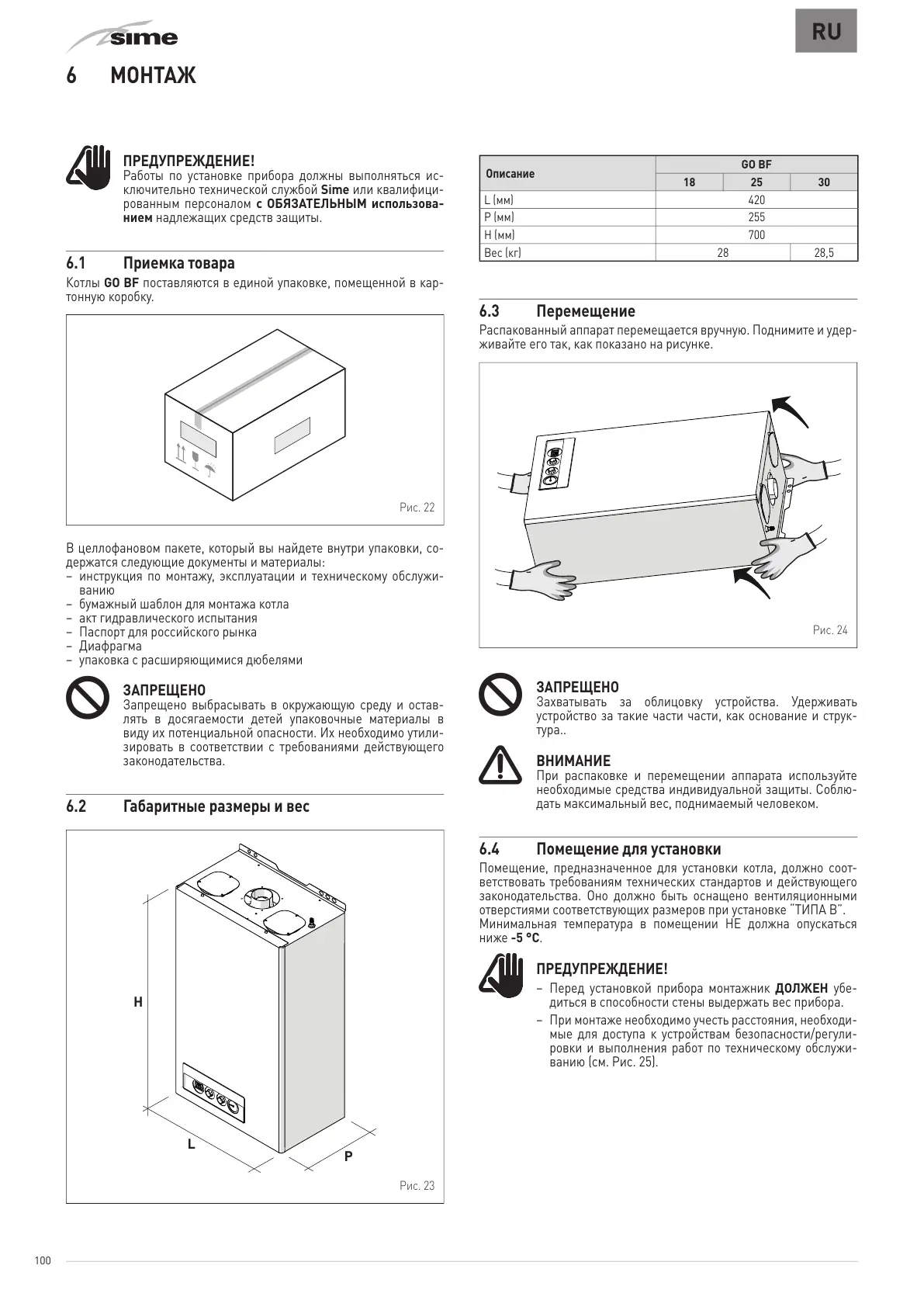 Распакованный аппарат перемещается вручную. Поднимите и удер-