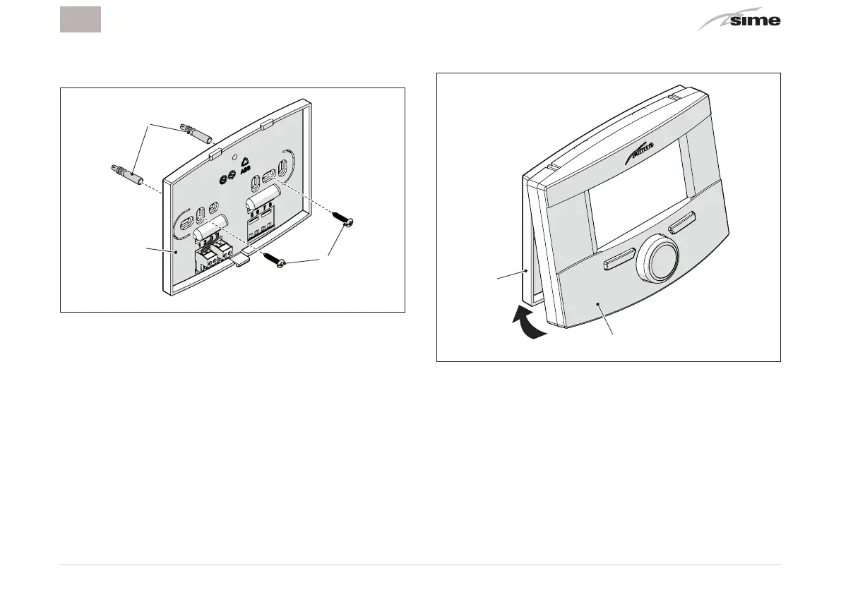 – Fixez la base au mur (2) avec les vis (7) et les chevilles (8),