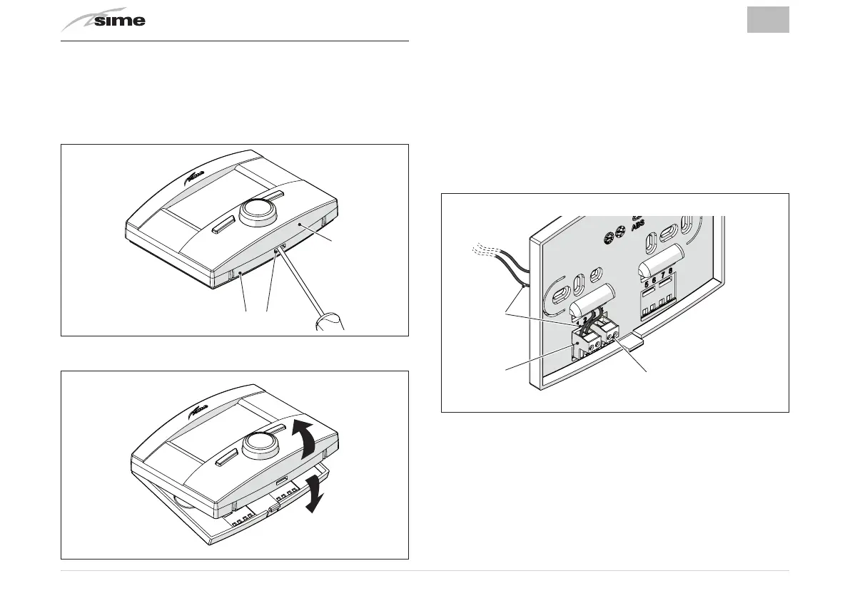 – Sluit hem aan op de verwarmingsketel en de klemmen (5)