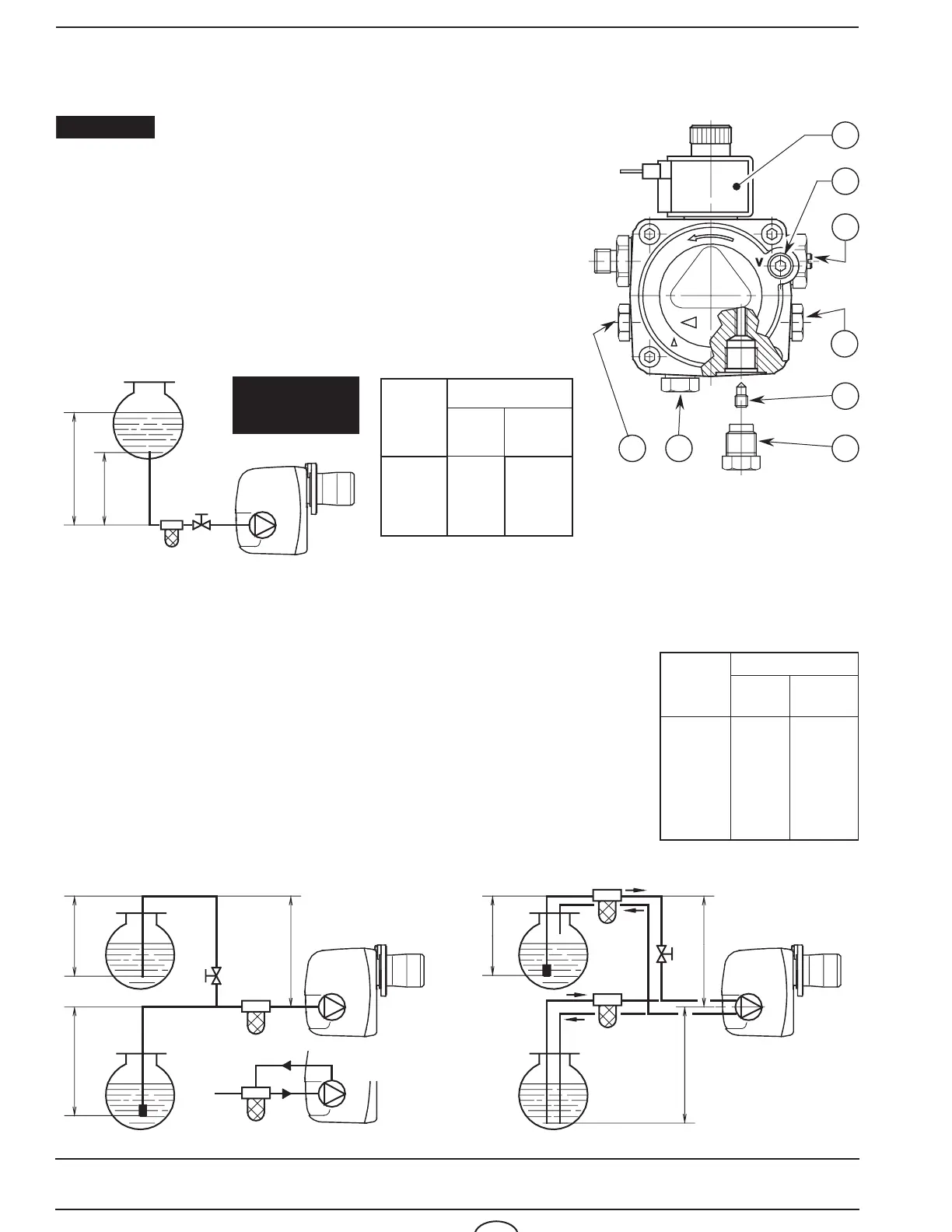 In the vacuum systems (fig. 7) the return line should terminate within the oil tank