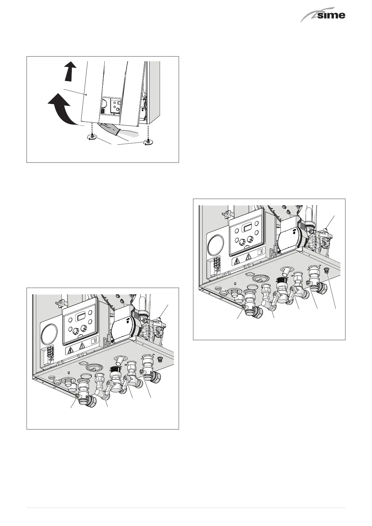Refit the front panel of the boiler hooking it on at the top,