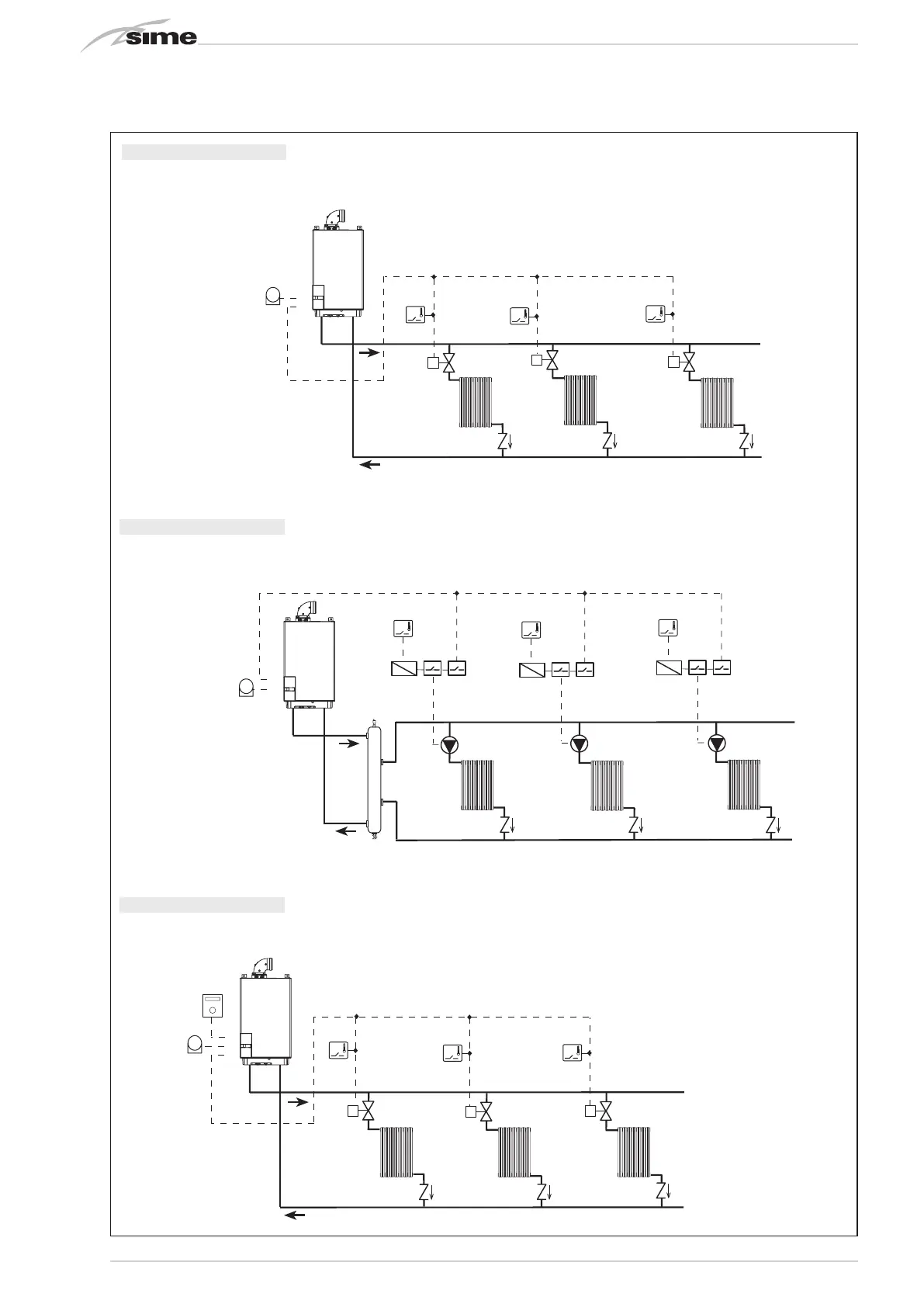 მრავალზონური სისტემა სარქვლით, ოთახის თერმოსტატით, დისტანციური მართვით SIME HOME