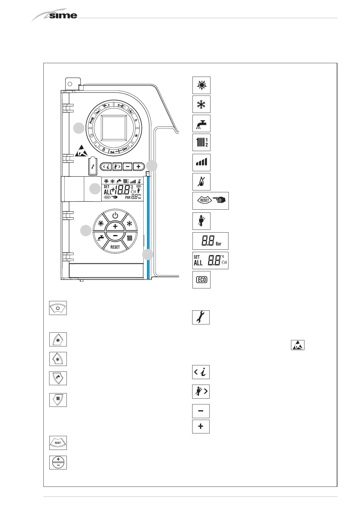 When this key is pressed, the boiler provides heating
