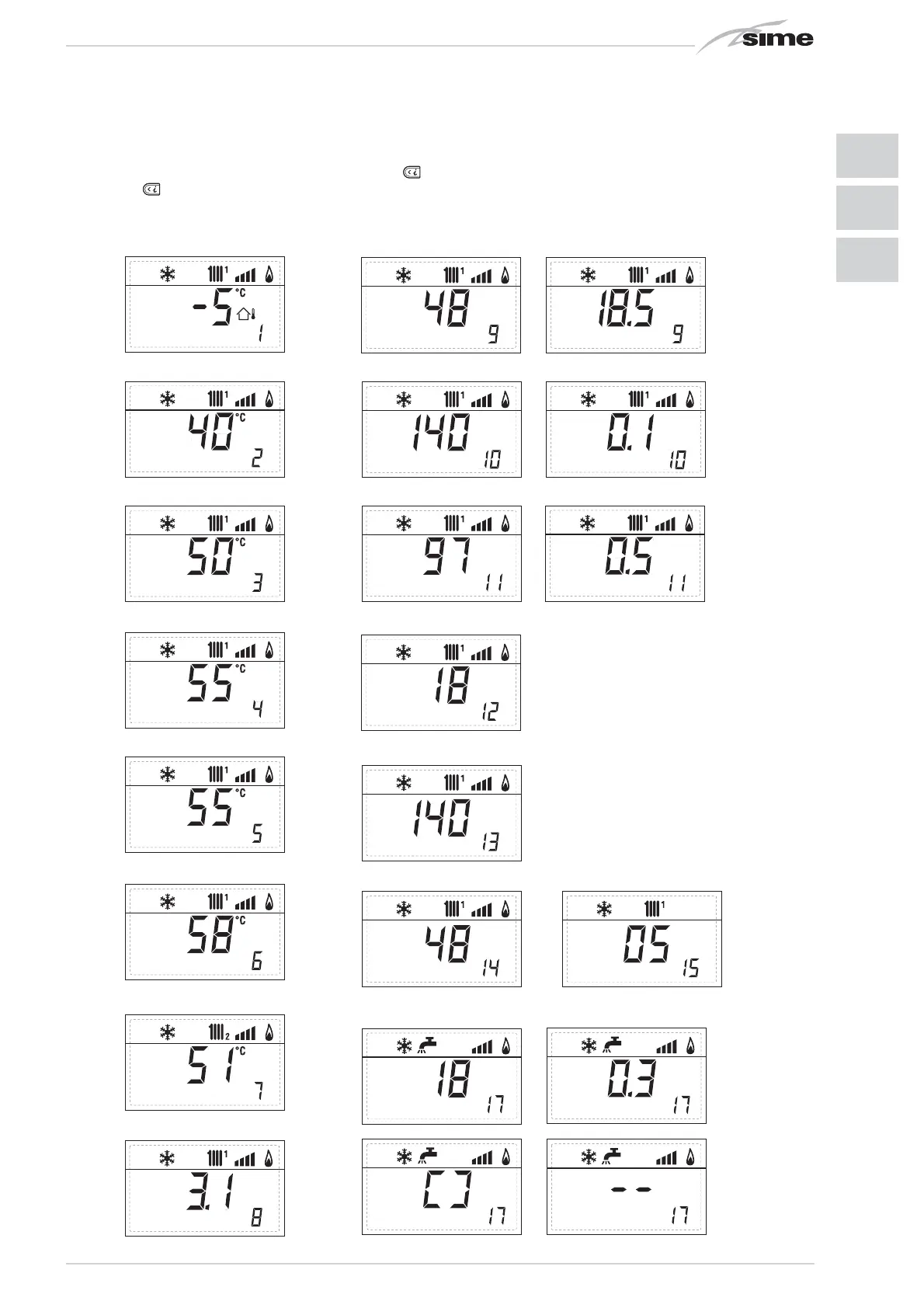 Para acceder a la información para el instalador, pulsar la tecla (3 fig. 12). Cada vez que se pulsa la tecla se pasa a la información siguien-