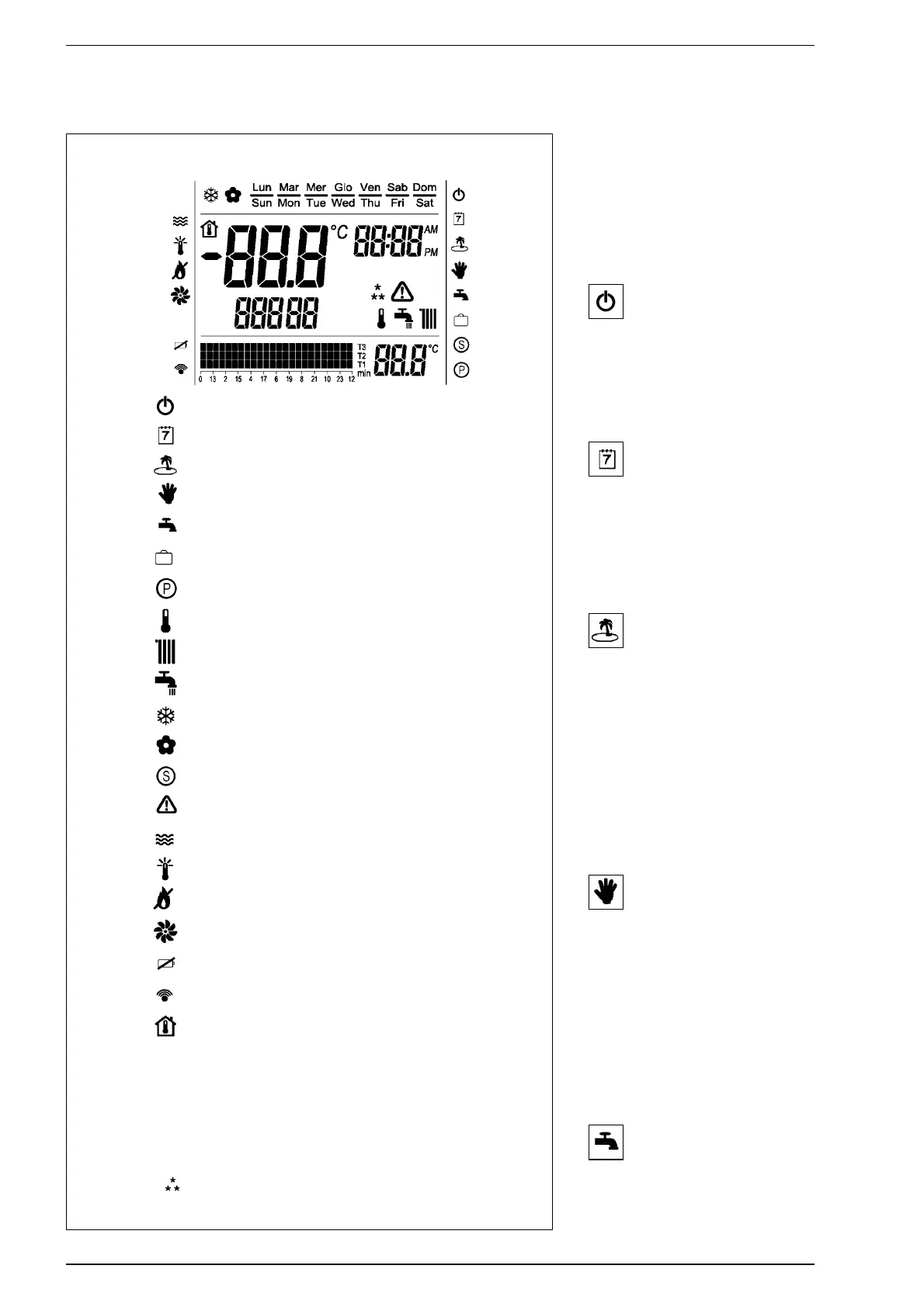 the boiler and any alarms are displayed)