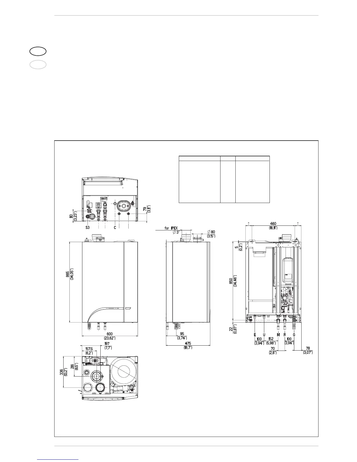 N.B.: The boiler is supplied with an aluminum adapter from diameter 80