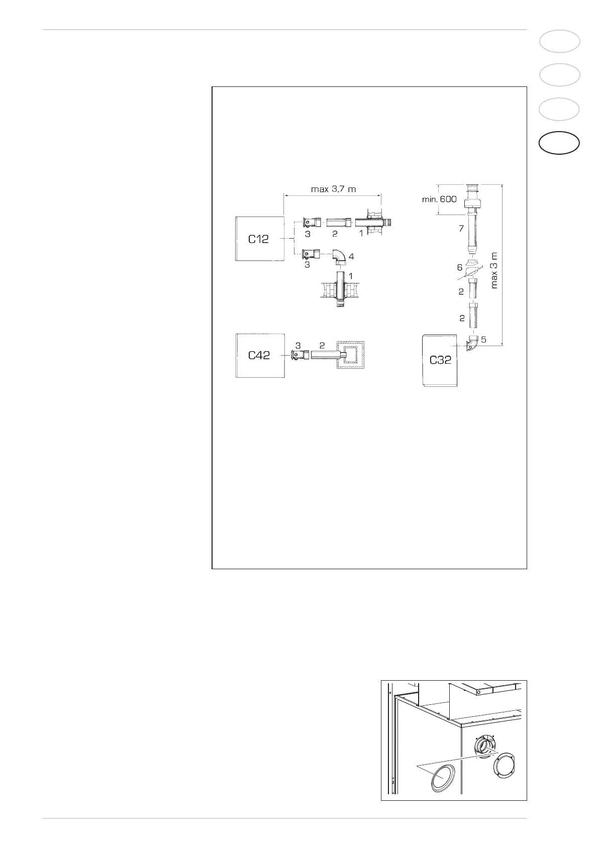 C42 Outlet and intake in common separated flues, but exposed to the same