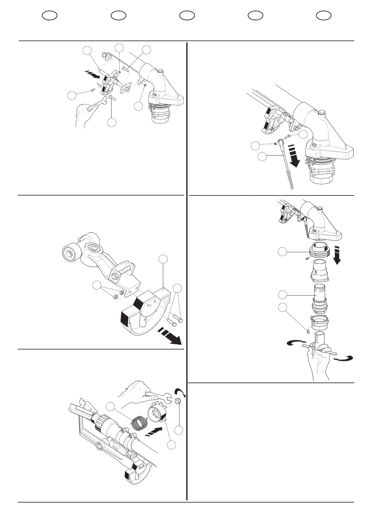 Unscrewscrews(1),(3),(4)andnuts(2)andremovelever(5).