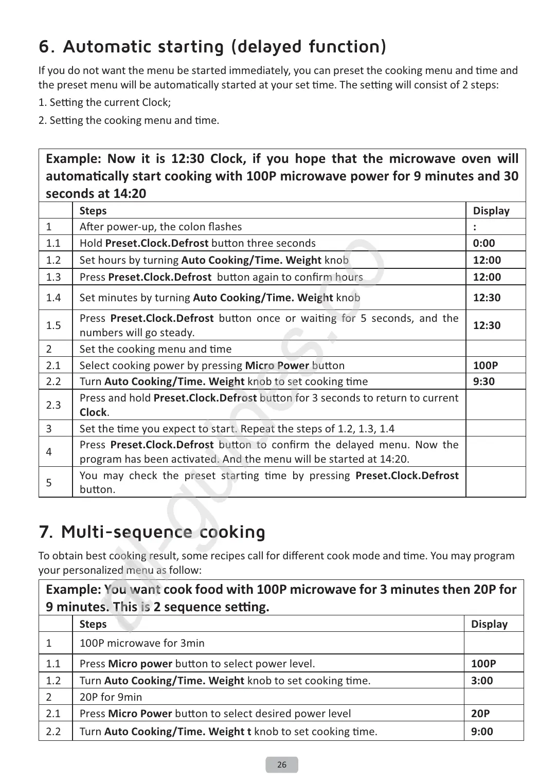 Press Preset.Clock.Defrost ďƵƩŽŶ ƚŽ ĐŽŶĮƌŵ ƚŚĞ ĚĞůĂLJĞĚ ŵĞŶƵ EŽǁ ƚŚĞ