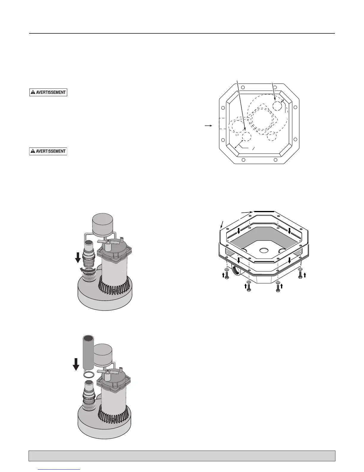 Mettre la pompe dans le collecteur, comme il est illustré. Aligner