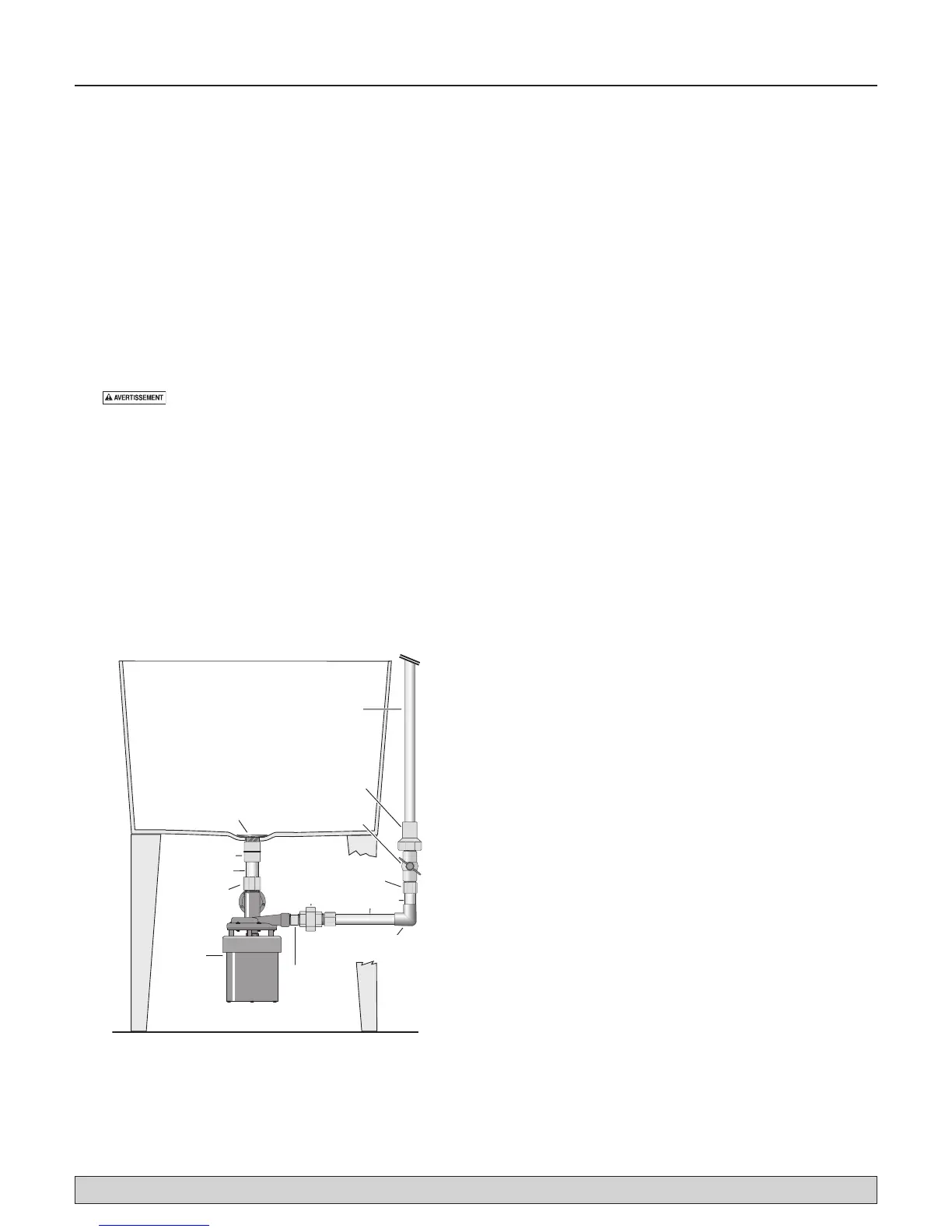 12. Installez la tuyauterie de refoulement tel qu’indiqué aux