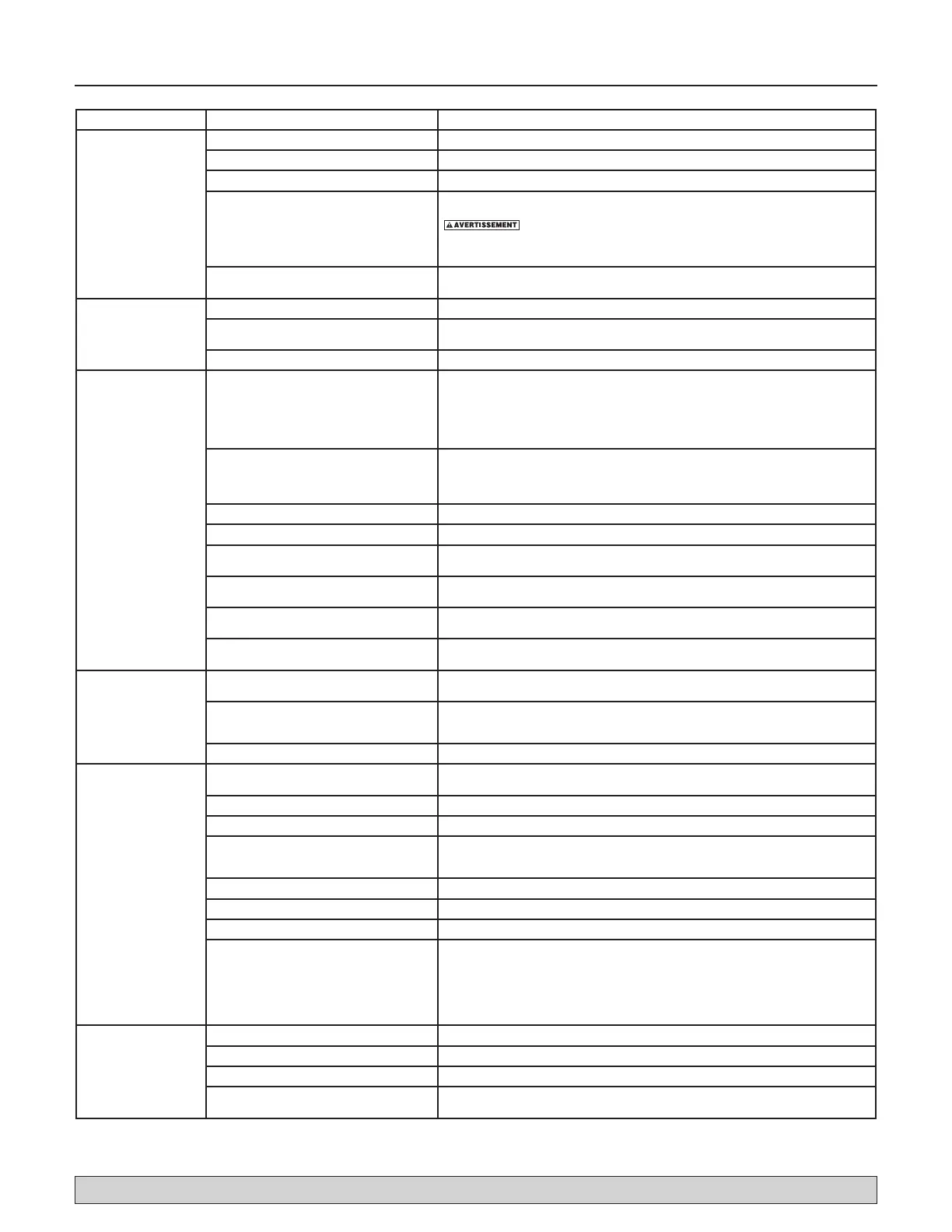 Le moteur ne tourne pas Le sectionneur est ouvert S’assurer que le sectionneur est enclenché.