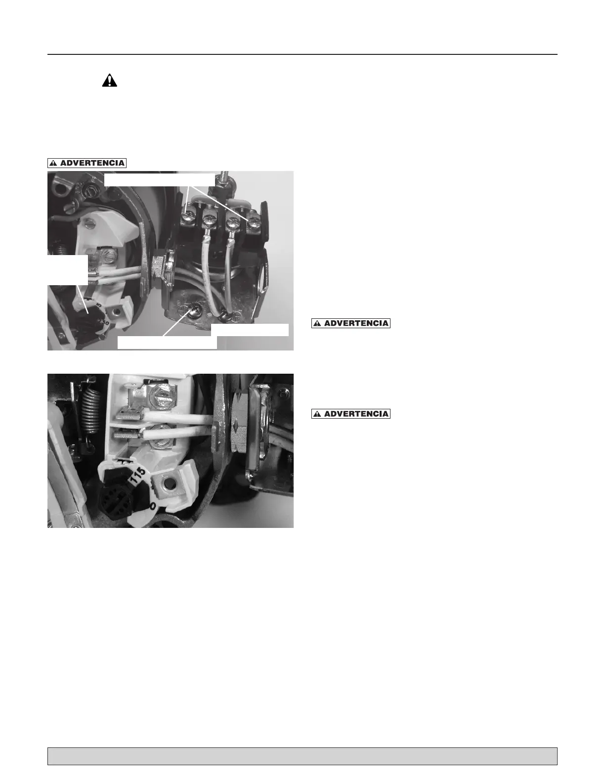 Desconecte la corriente antes de trabajar en la bomba, el motor, el conmutador a presión, o los cables.