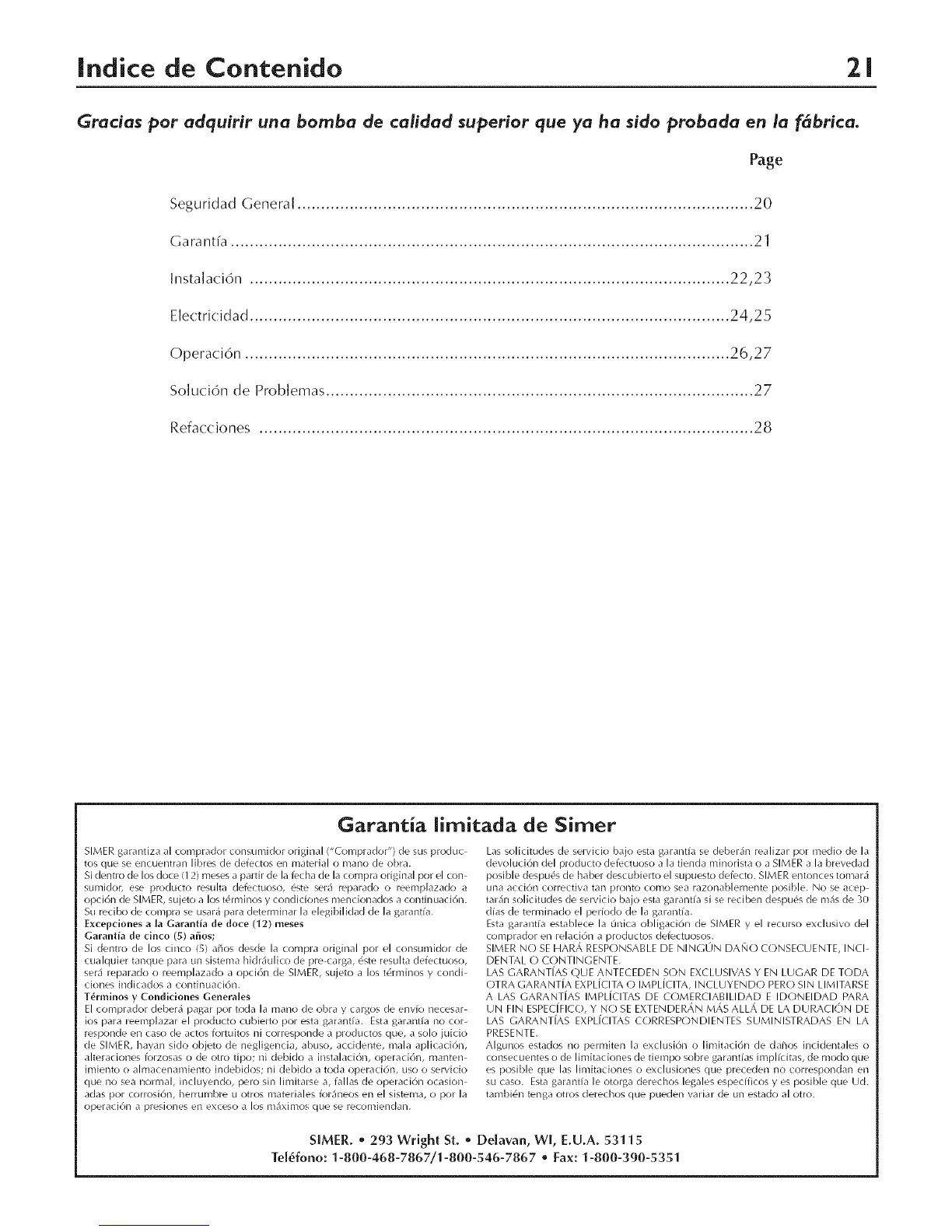Esta garantia establece la 0nica obligaci6n de SIMER y el recurso exclusivo del
