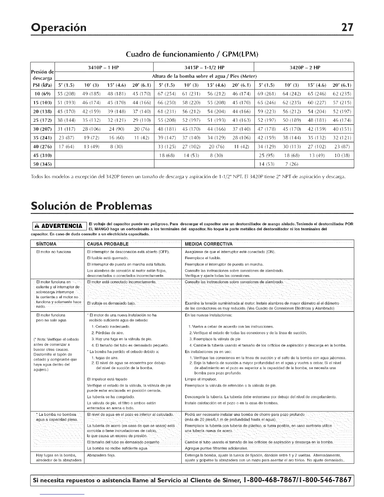 modelos a excepci6rl del 3420P tienen un tamaF_o de descarga y aspiraci6n de I-1/2" NPT. El 3420P tiene 2" NPT de aspiraci6n y descarga.