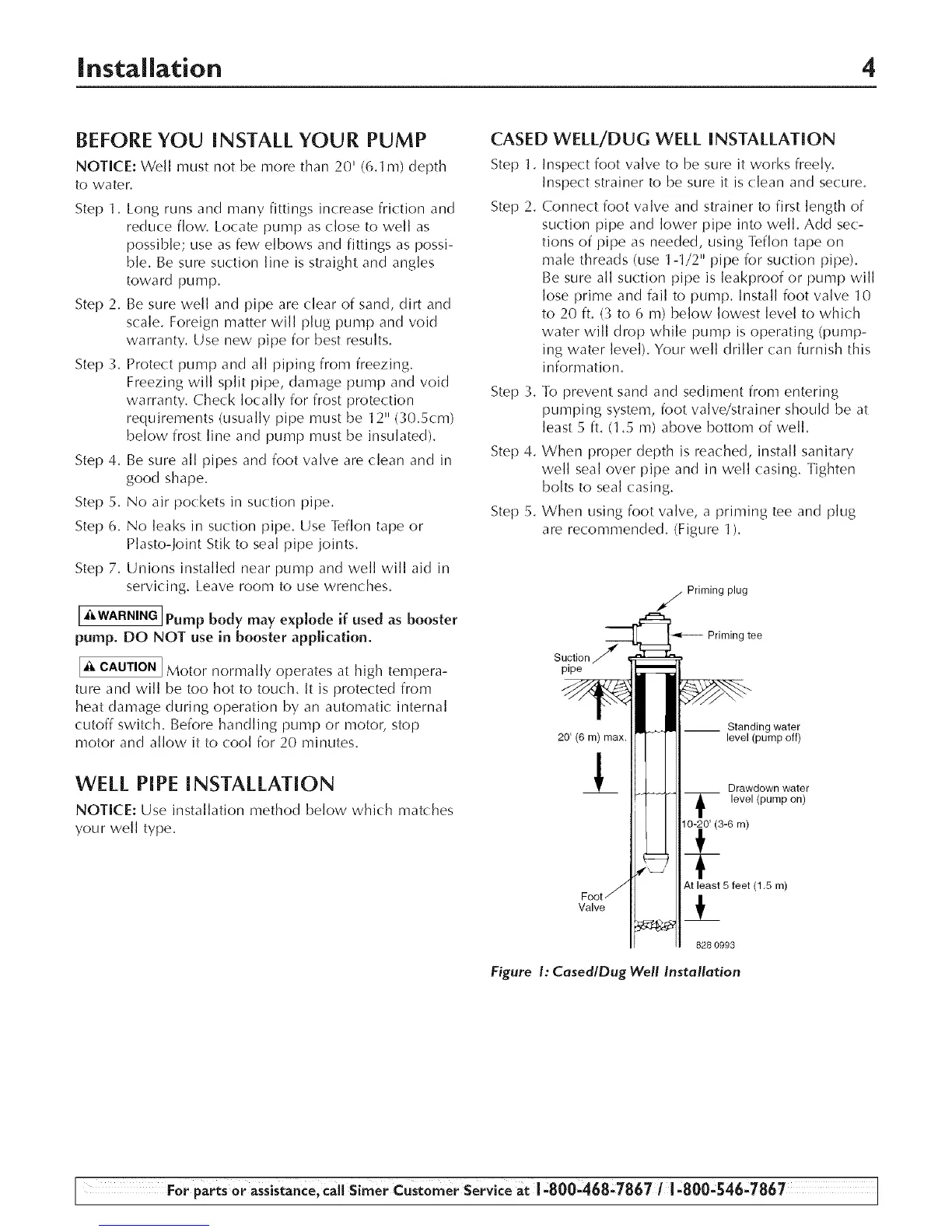 NOTICE: Well must not be more than 20' (6.1m) depth