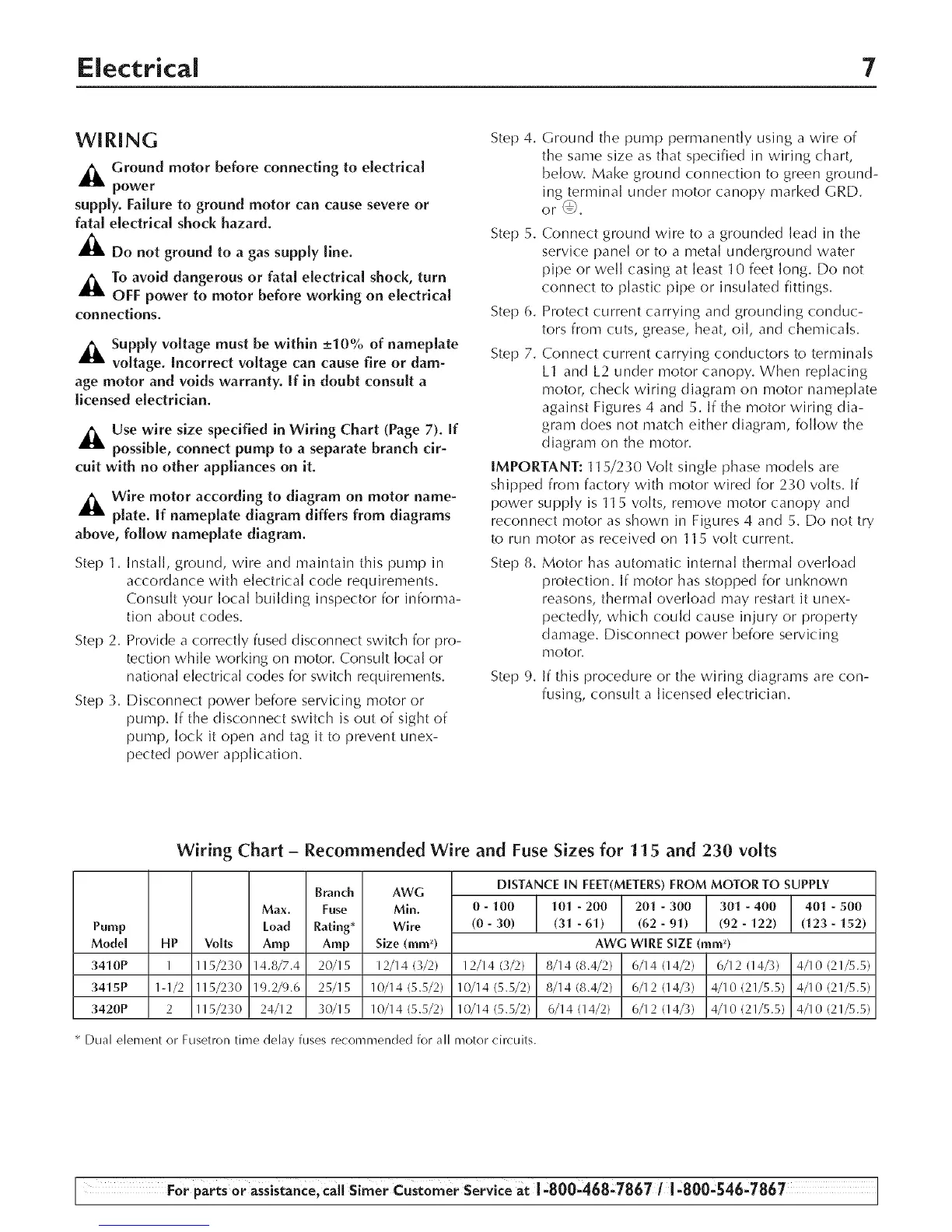 Wiring Chart - Recommended Wire and Fuse Sizes for 115 and 230 volts