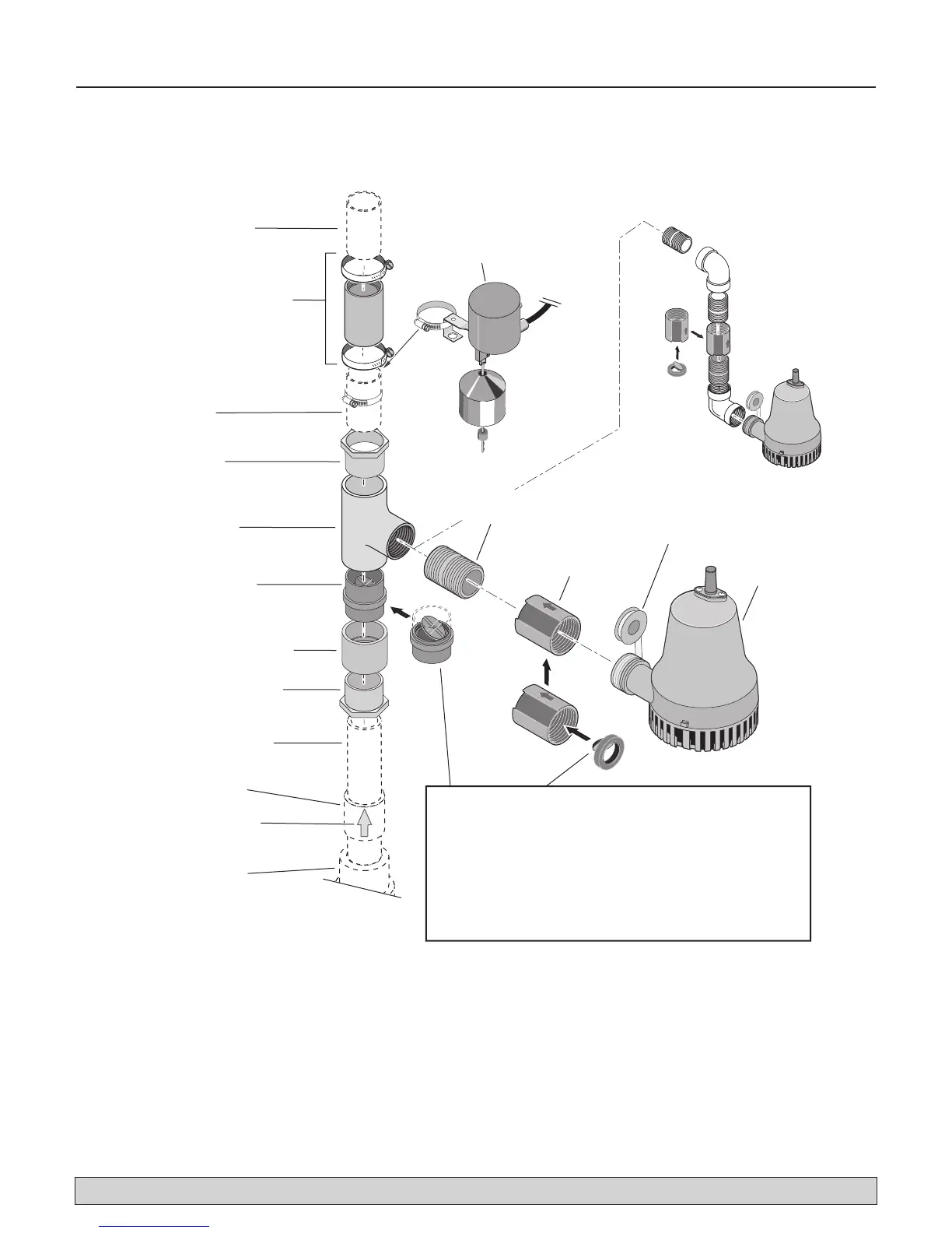 Use if necessary to adapt a 1-1/4” discharge pipe to the 1-1/2” fittings supplied.