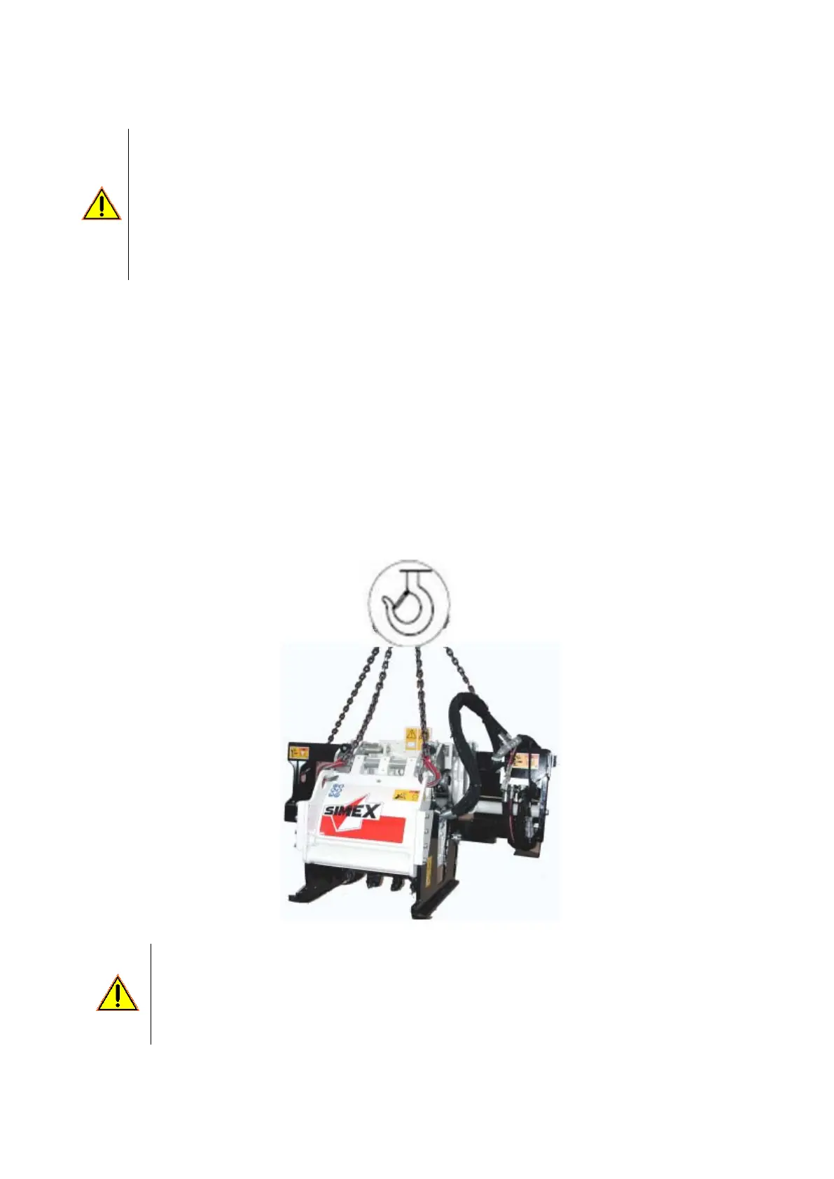 cables or chains at the four points shown with the relative stickers (see chapter 4). When lifting, use