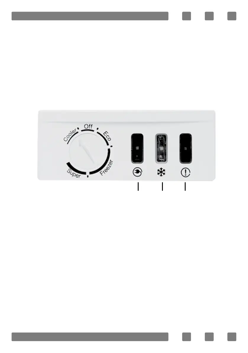 das Gefriergerät mit Strom versorgt wird. Die rote Leuchte zeigt Probleme mit