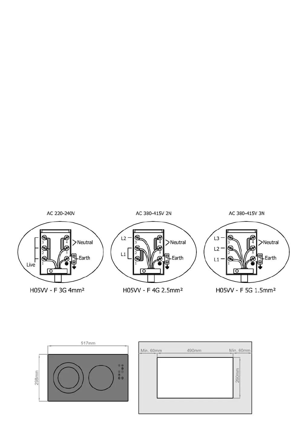 4. La conexión eléctrica de la placa sólo se debe hacer usando enchufes con la Tierra instalada, y de