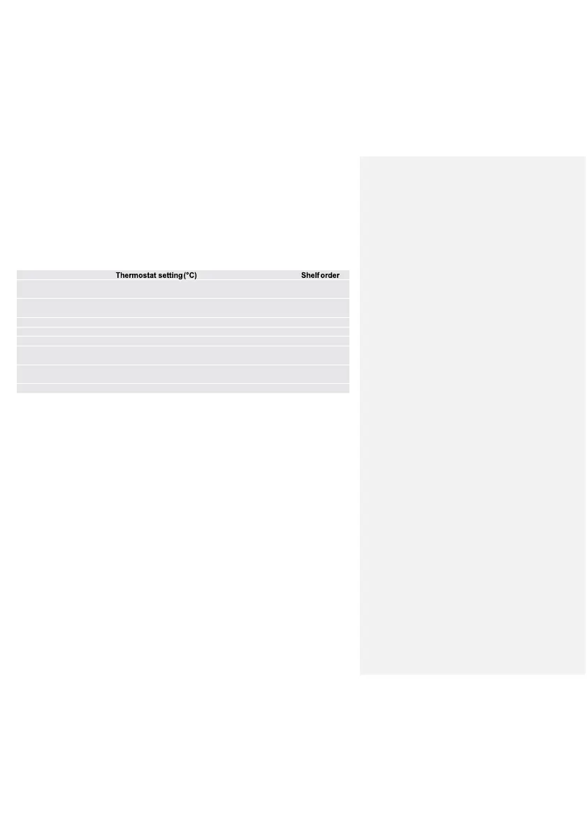 cooking position. Set the thermostat to a proper temperature as per the values in the