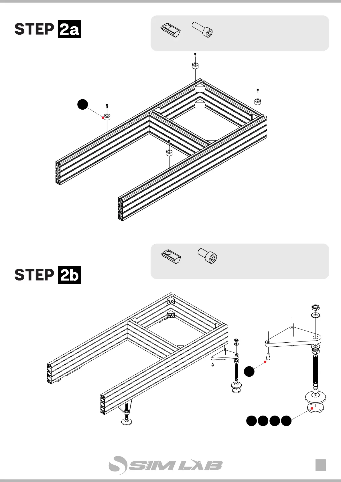 SimLab P1-X - Step 2 a: Rubber Feet Installation; Step 2 b: Adjustable Feet Installation