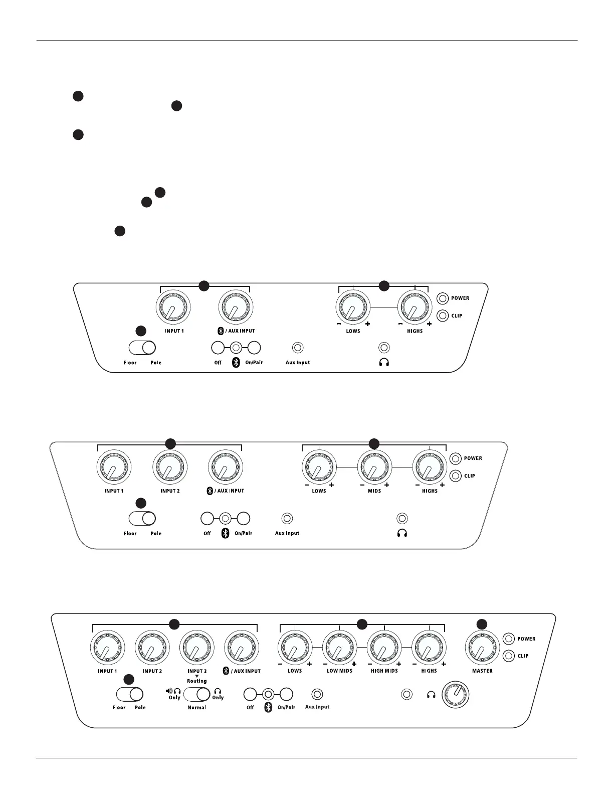 Voicing switch to Floor when using the amplifier lying horizontally on the floor, or free-standing vertically