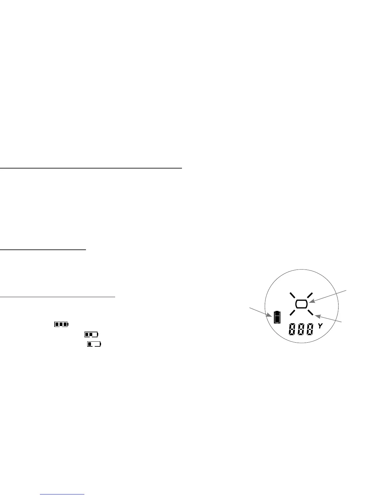 la portée s’affiche. Relâchez le bouton marche/arrêt. Remarque : Une fois activé l’écran LCD du TELEMETRE LASER SIMMONS reste actif et affiche