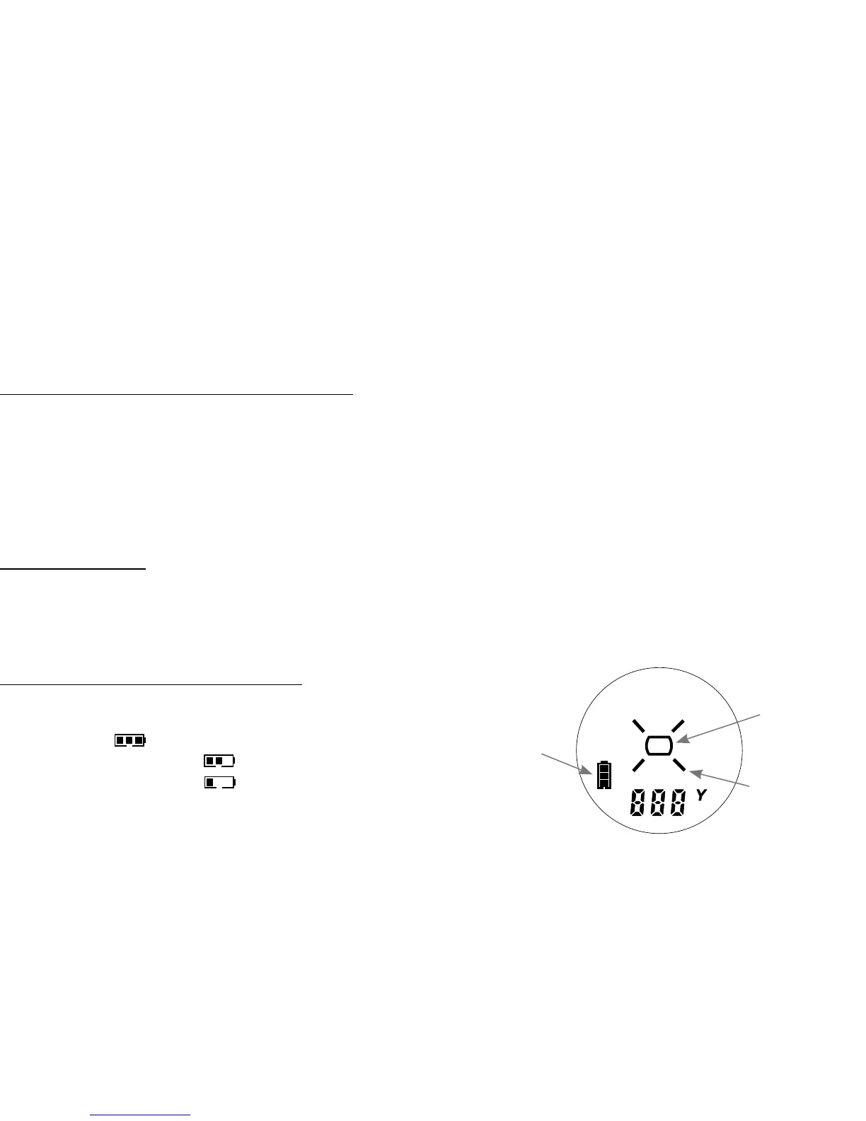 Der LCD Ihres SIMMONS LASER-ENTFERNUNGSMESSERS verfügt über beleuchtete Anzeigen, an denen Sie die Messeinheit, die Aktivität des