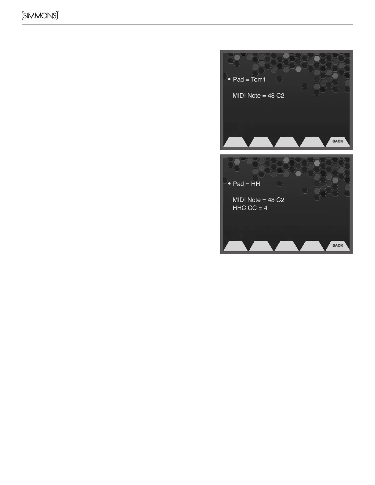 Each pad and rim sends a MIDI note. Press UTILITY then F5 [MIDI