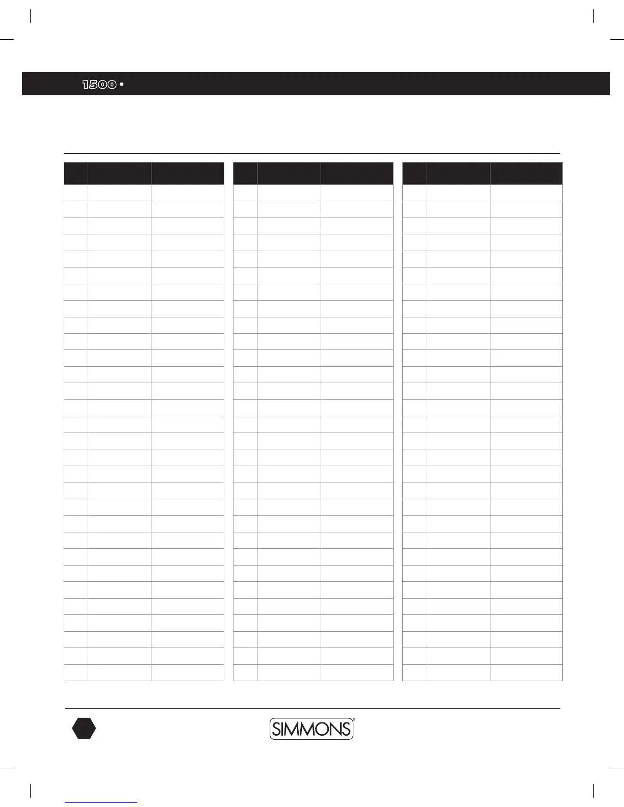 Simmons SD1500 - Song List
