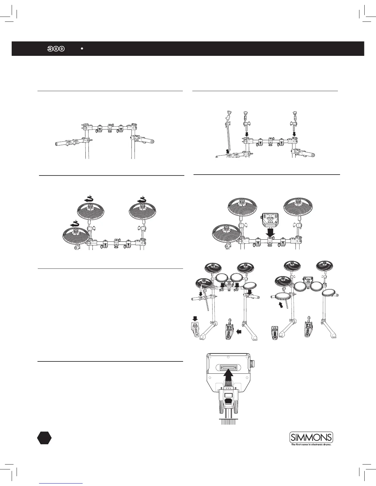 Insert each cymbal arm into the rack clamp. Insert (Long) hi-hat arm