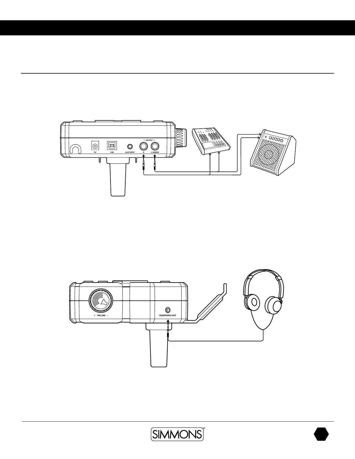 drum set without disturbing others. Connect the headphones to the headphone jack located on