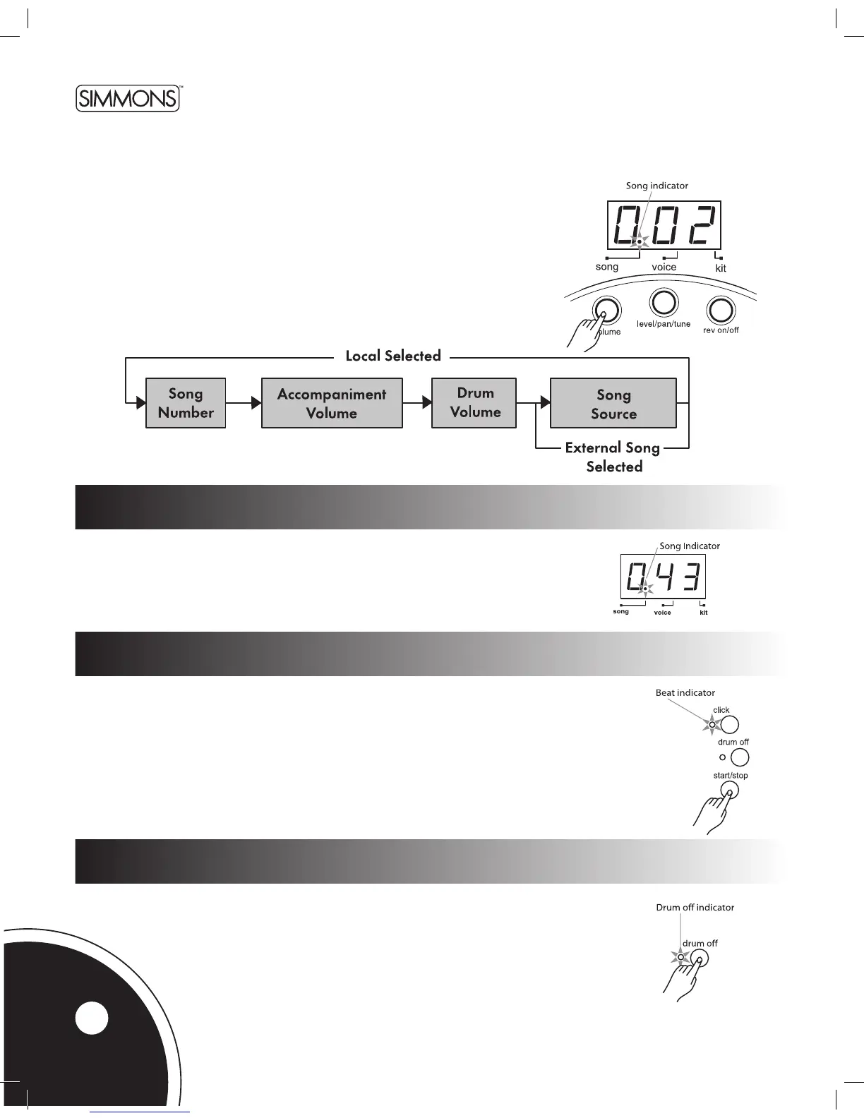 In the SONG Mode, you can select the song number, and adjust the volume of the