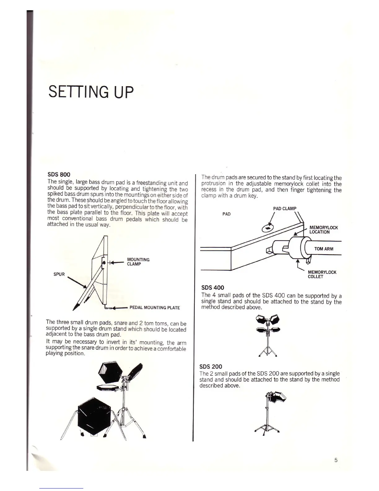 Simmons SDS 800 - SETTING UP; SDS 800 Setup; SDS 400 Setup; SDS 200 Setup