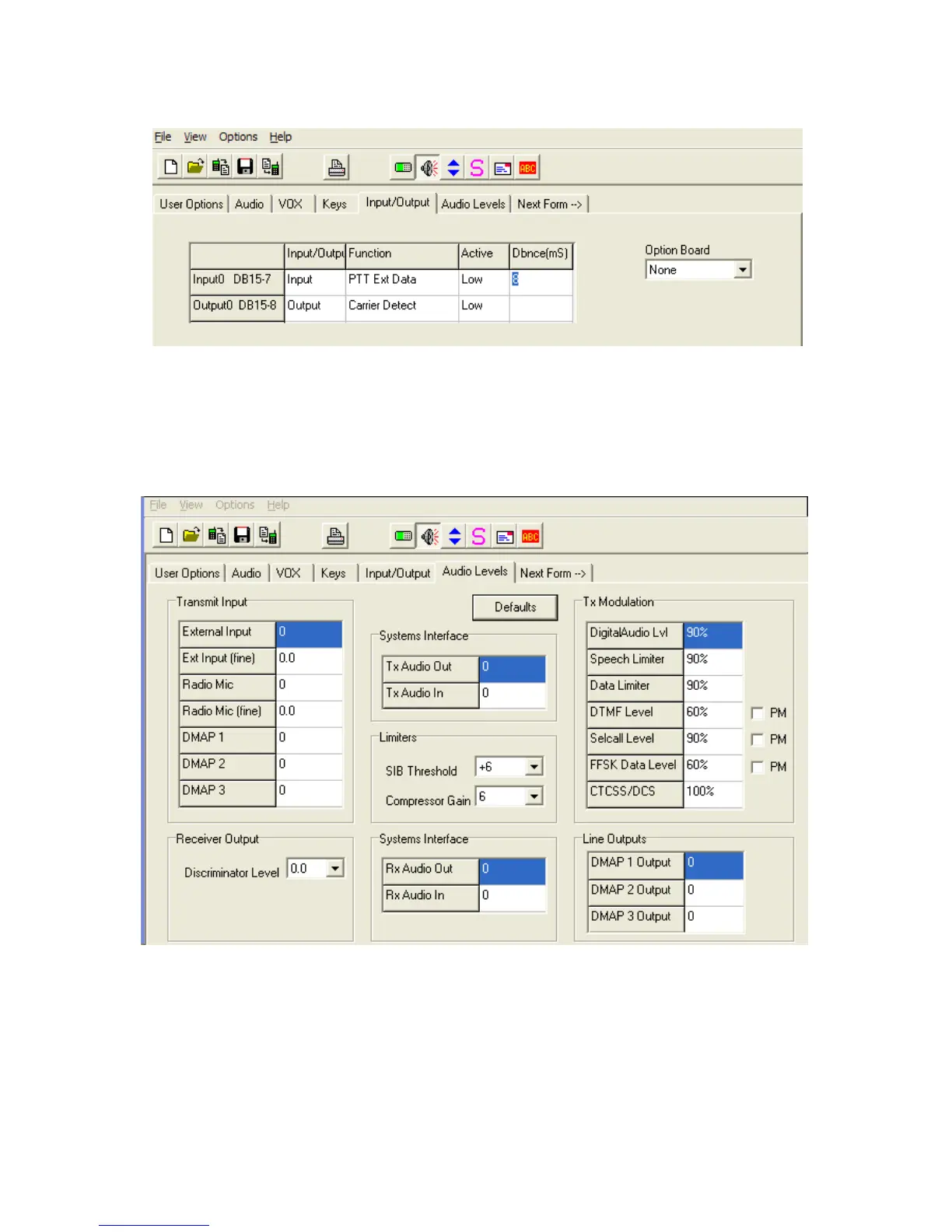 Next to be programmed is the Input/Output values which are shown below.
