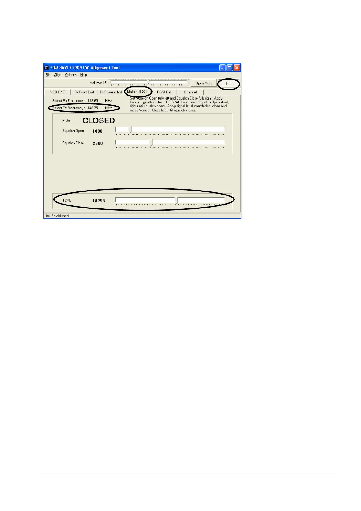 Select the Mute/TCXO page.