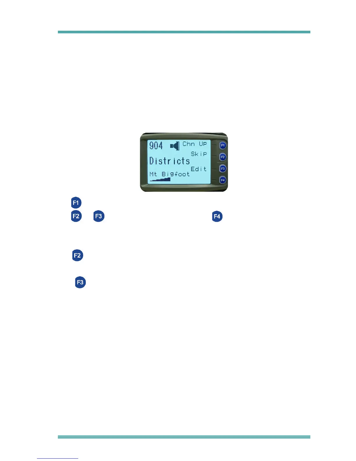 The display shows the name of the current Scan-Group (e.g. “Districts”), which can be