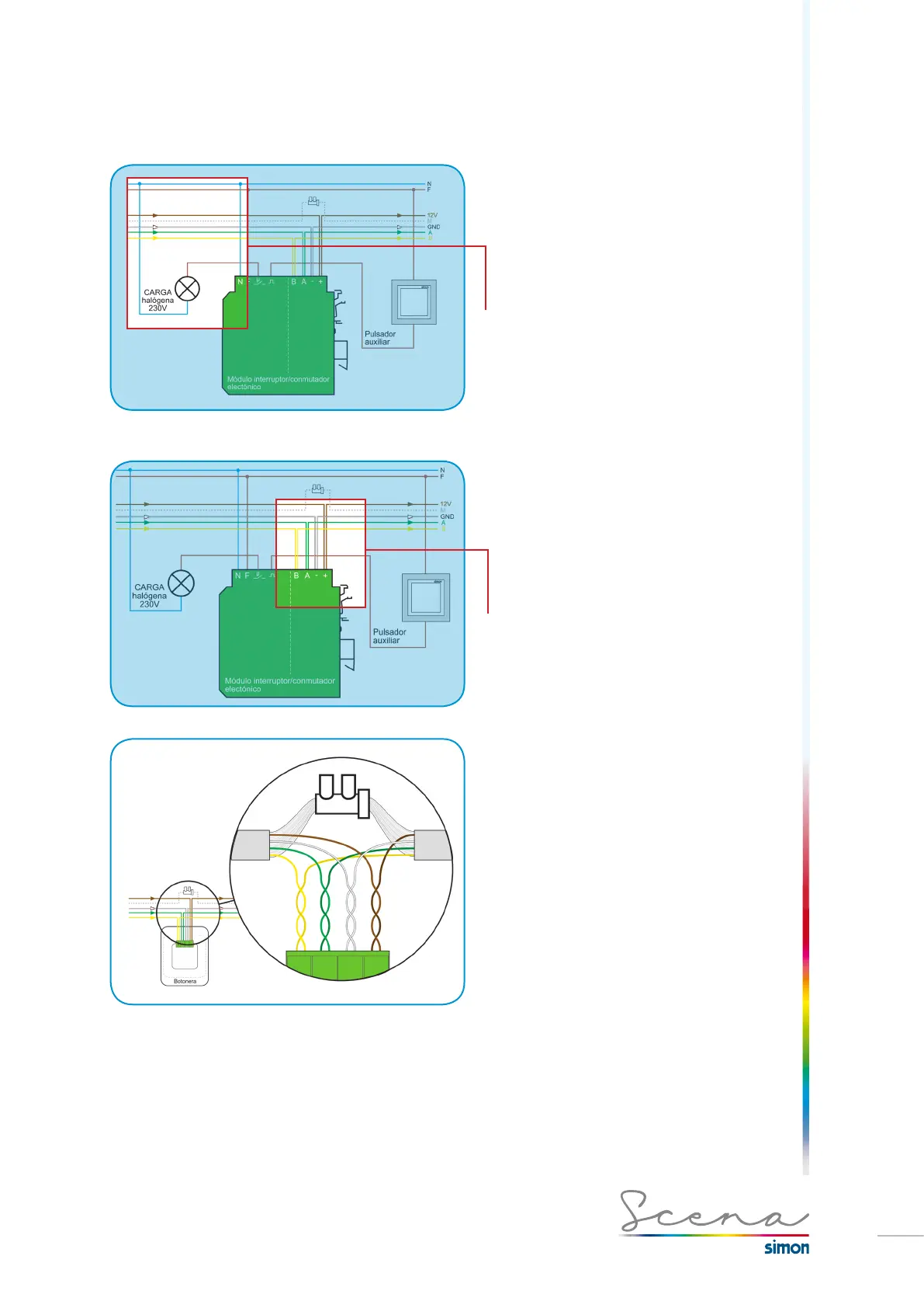 · La instalación del sistema Scena se caracteriza principalmente por dos tipos de conexiones muy diferenciadas.