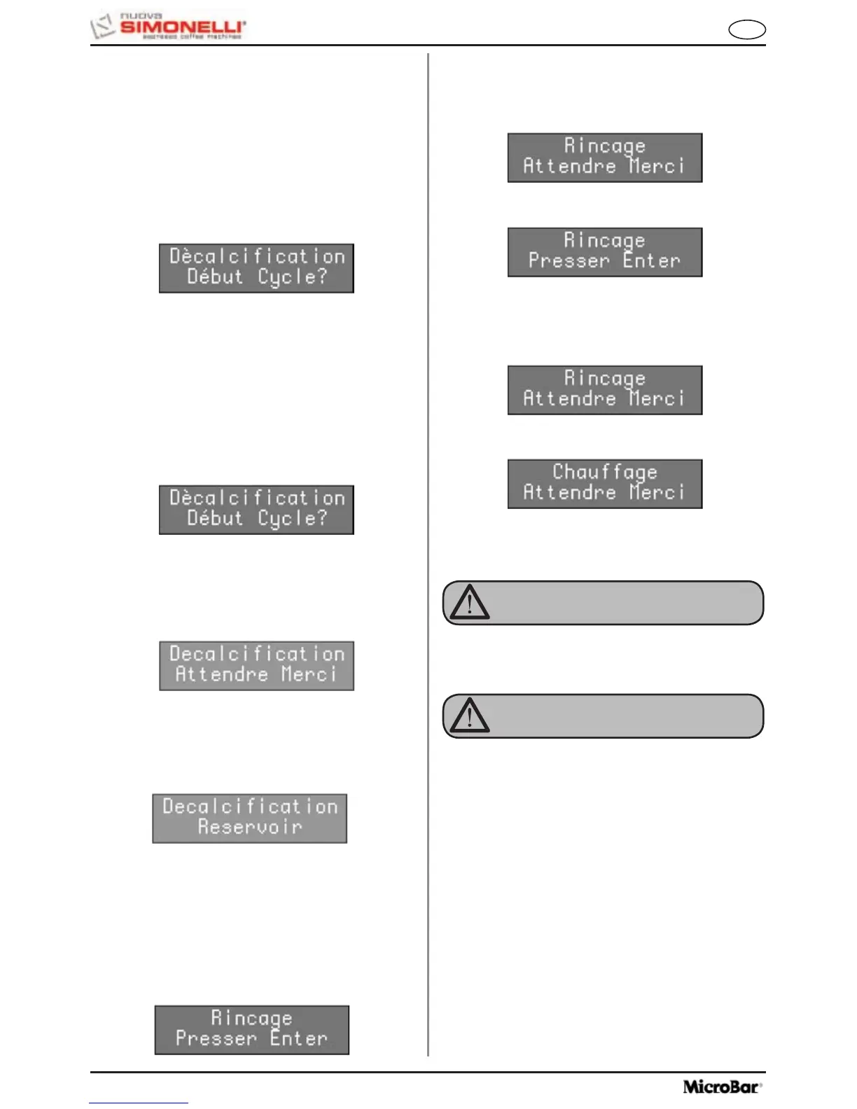• Pendant cette phase, la machine affiche: