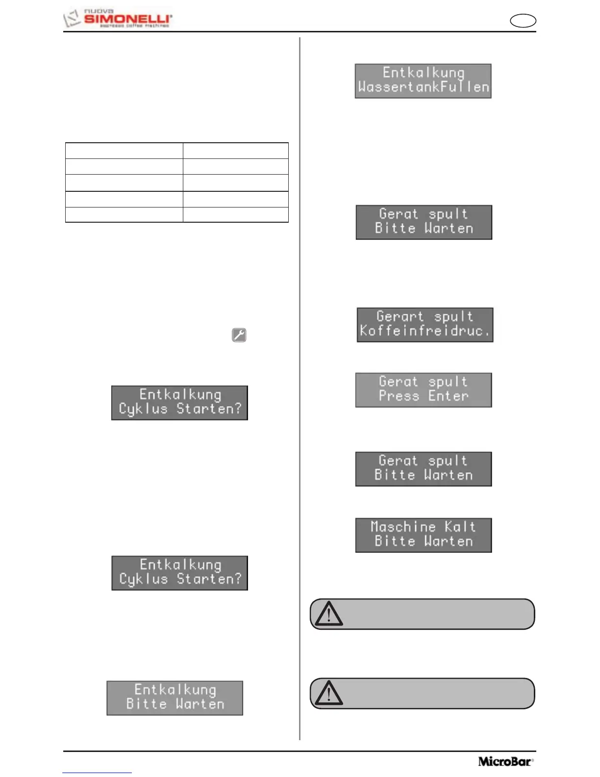 HINWEIS: Der Alarm „ENTKALKUNG
