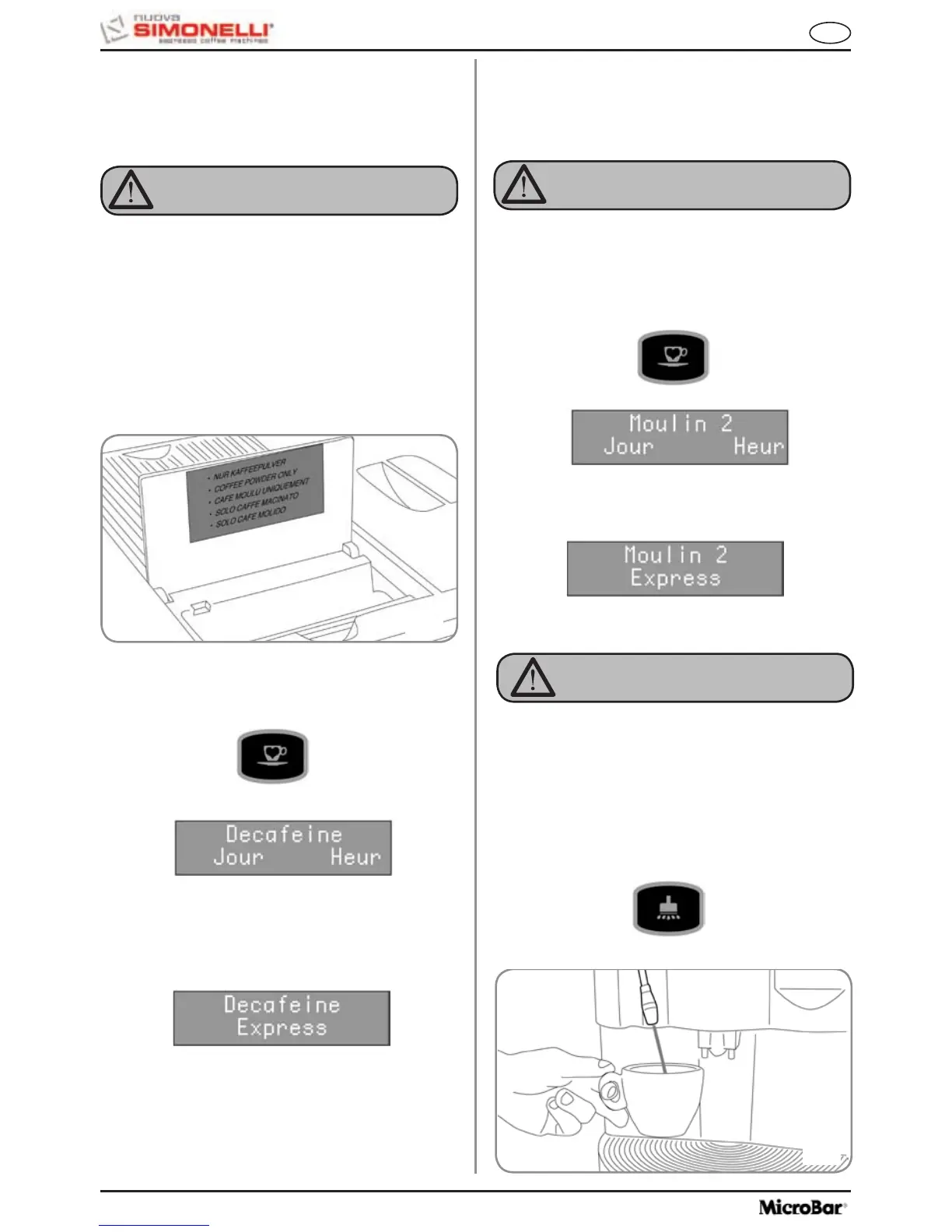 Ne verser dans le convoyeur que du café moulu.