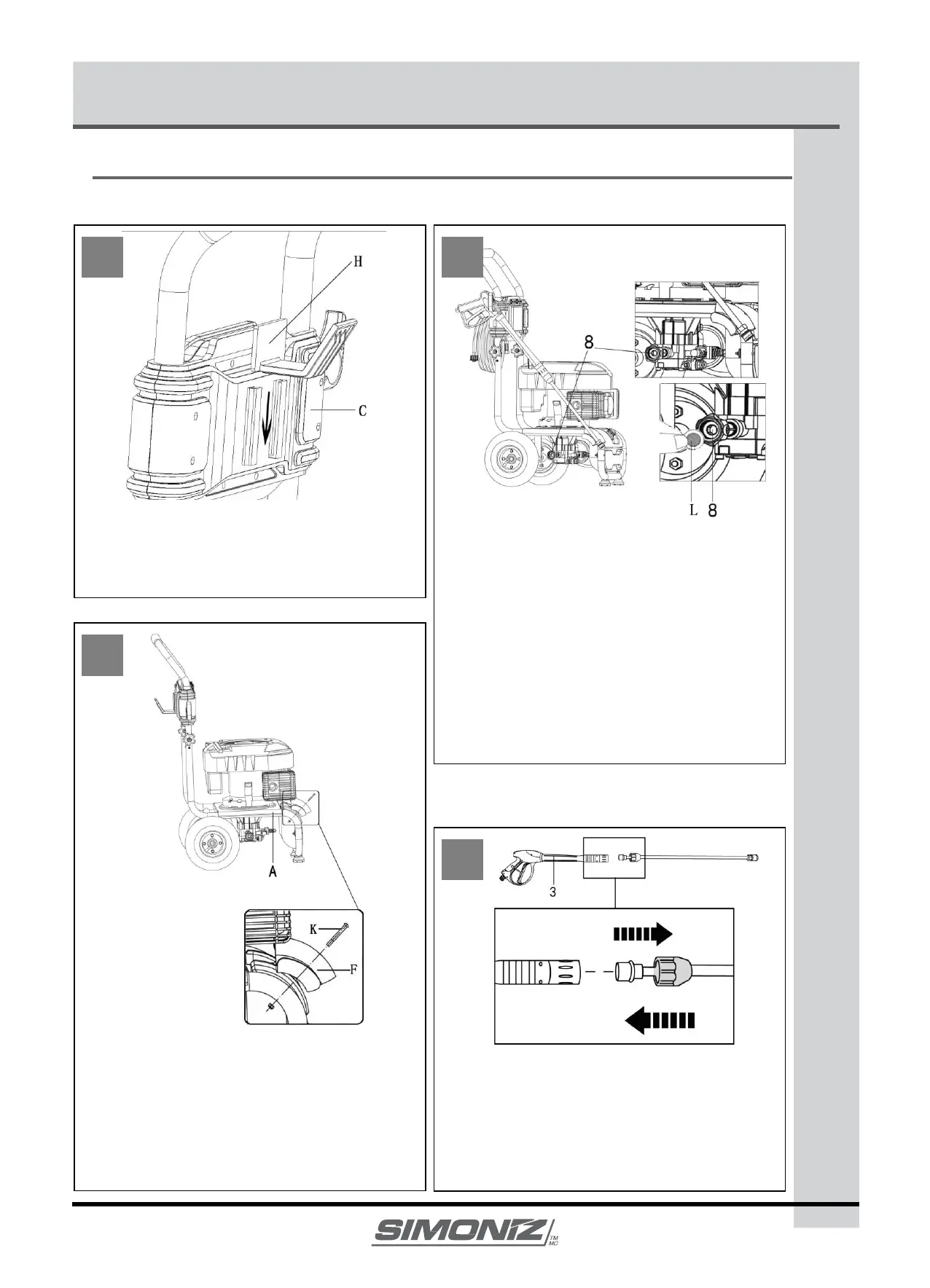 Insert hose hook (H) to the groove of handle