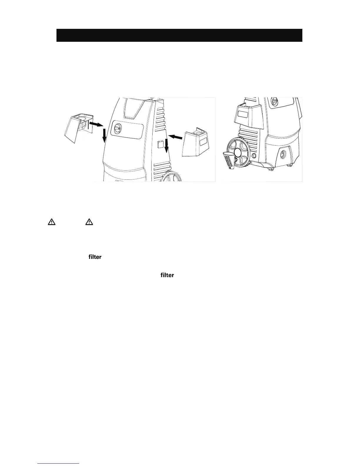 • Never use the pressure washer to draw in water contaminated with solvents (e.g.