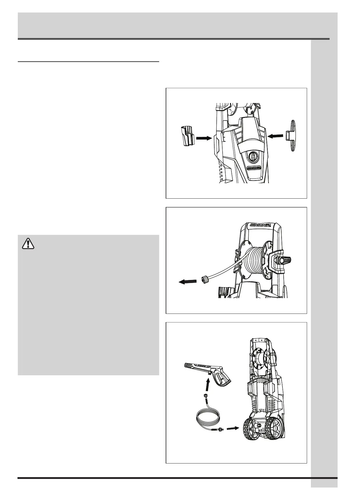 • Never use the pressure washer to draw in water